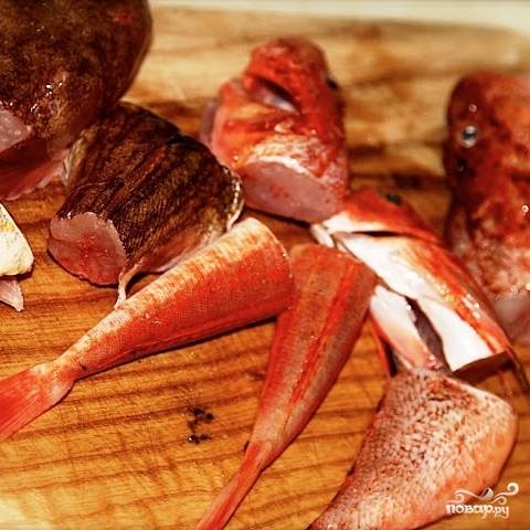 Рыбу потрошим, чистим (головы не отрезаем) и нарезаем на куски.