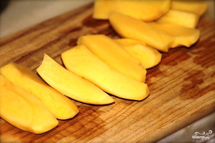 Картофелины очищаем от кожуры и нарезаем на 4 продольных части.