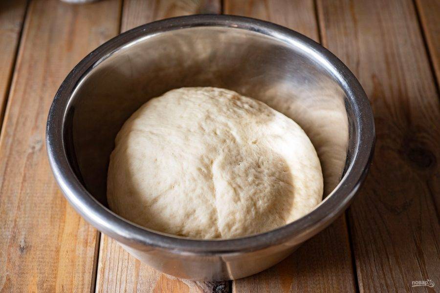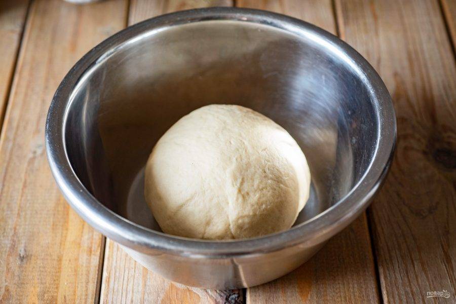 Замесите мягкое, не прилипающее к рукам тесто, которое округлите в миске, накройте кухонным полотенцем и оставьте в покое на час.