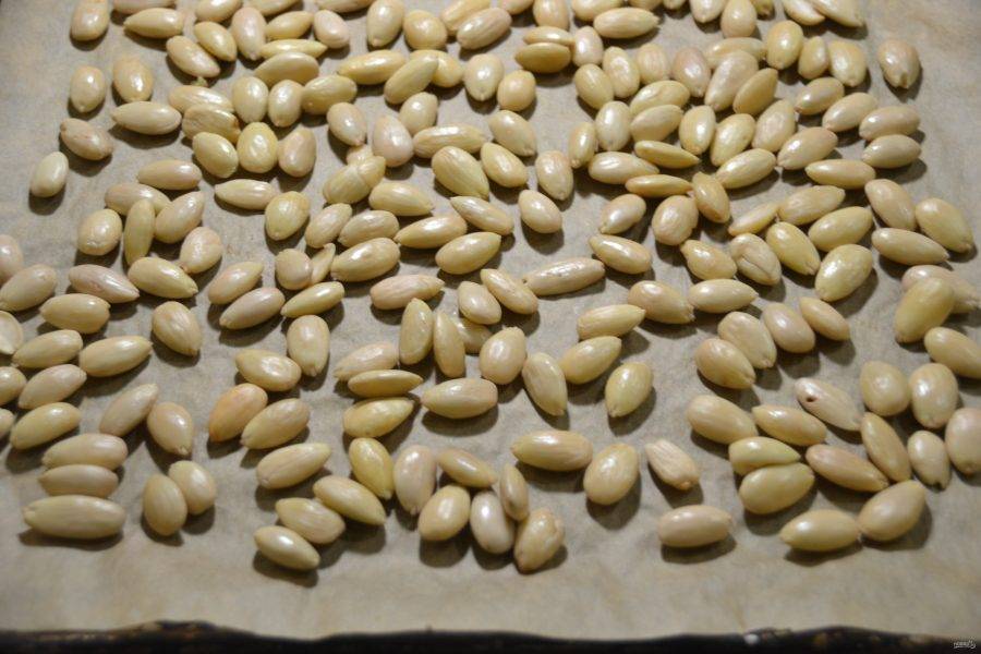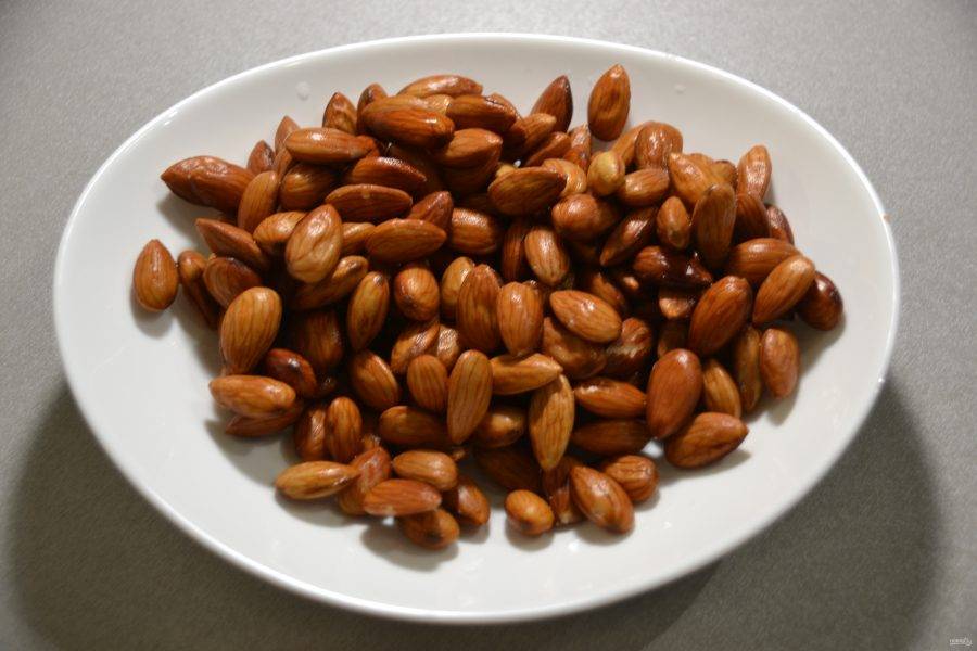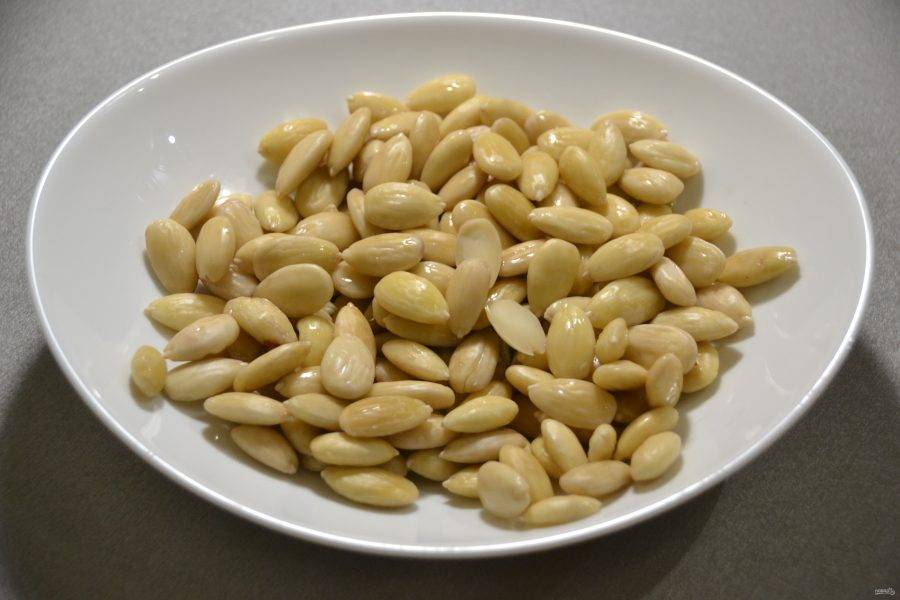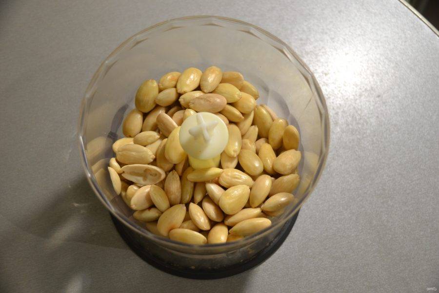 Очистите миндаль от кожицы.