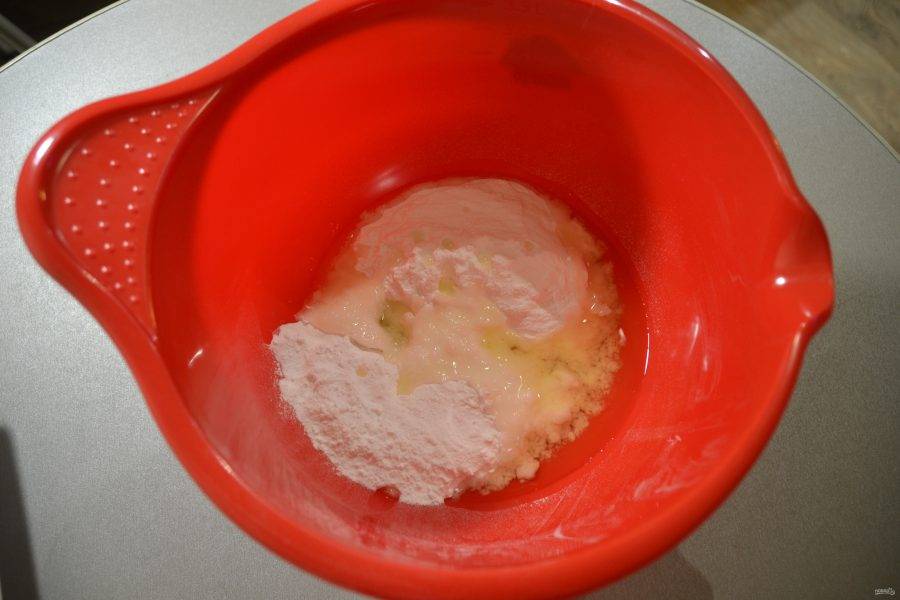 Всыпьте туда же 180 граммов сахарной пудры.
