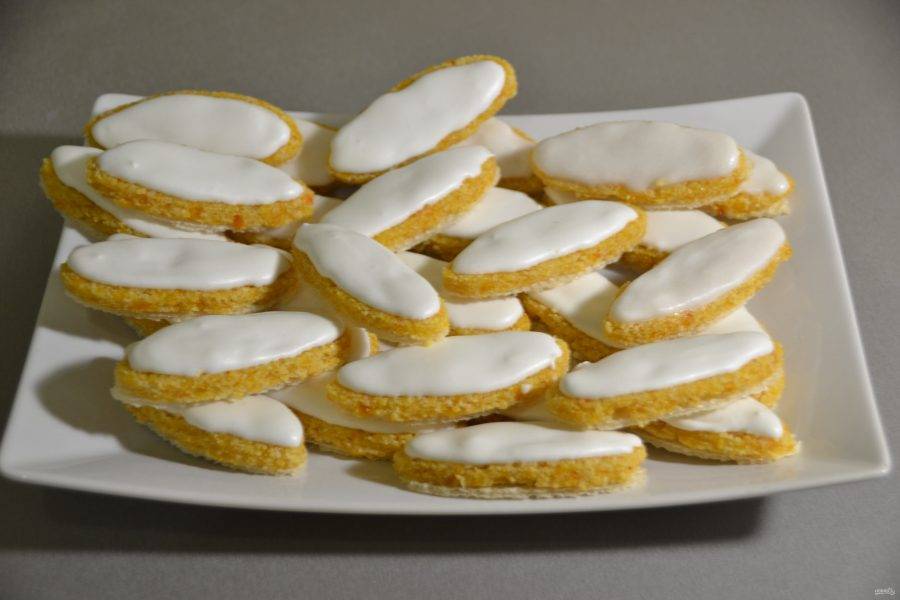 На готовые заготовки нанесите сахарную глазурь и отправьте в духовку на 10 минут при минимальной температуре.