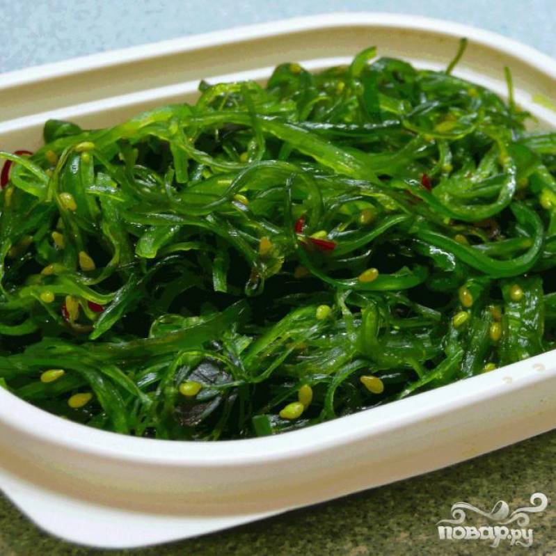 Пикантное блюдо из кальмара с японским салатом Вакамэ.