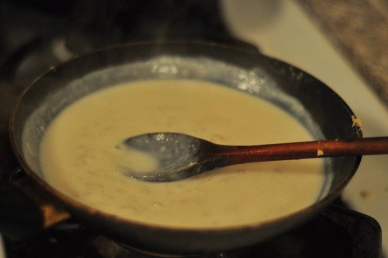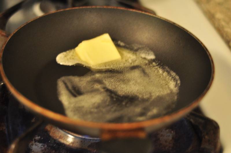 В растаявшее масло добавляем мелко нарезанный чеснок. Жарим, пока он не станет коричневым.