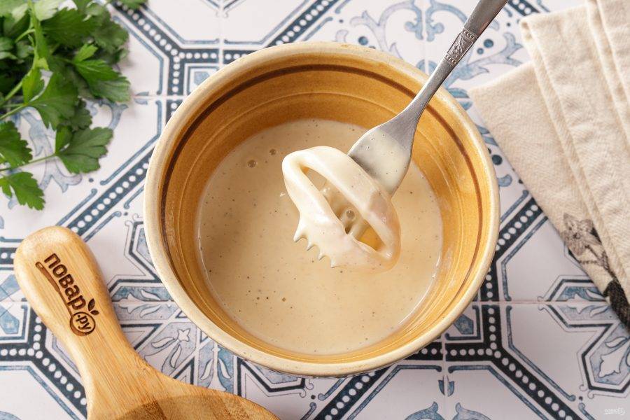 Кальмары в кляре готовы. Подавайте с любимым соусом. Приятного аппетита!