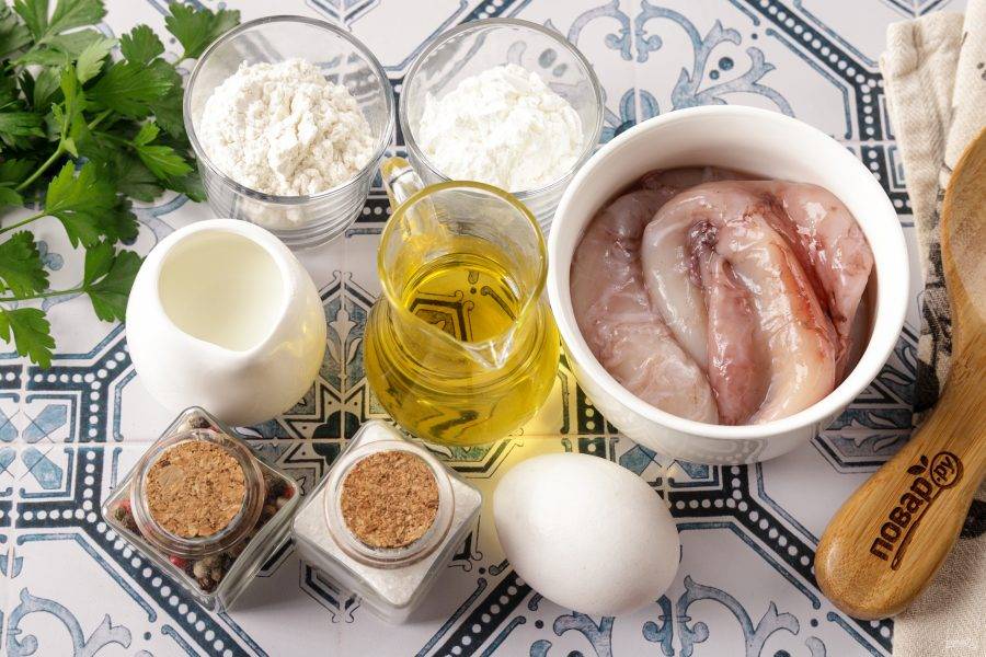 В глубокой миске соедините яйцо, крахмал, молоко и муку. Добавьте соль и перец по вкусу.
