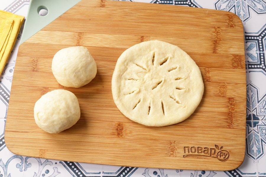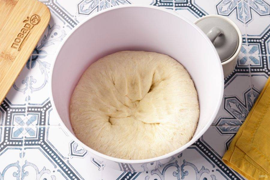 Придайте тесту форму шара, накройте плёнкой и оставьте в тёплом месте до увеличения в объёме на 1-1,5 часа.