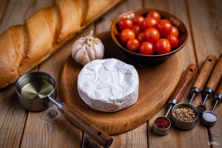 Если у вас есть аэрогриль, то очень рекомендую воспользоваться этим рецептом и запечь камамбер с ароматными специями. К камамберу выложите ломтики багета, добавьте черри. Получается просто невероятно!
