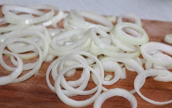 Разогреваем сковороду с растительным маслом, жарим камбалу вместе с луком. Обжариваем рыбу на среднем огне с обеих сторон до румяной корочки. Не забываем помешивать лук.