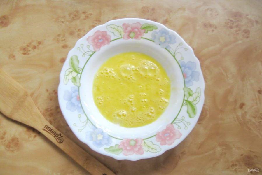 Яйцо разбейте в тарелку и взболтайте до однородности.