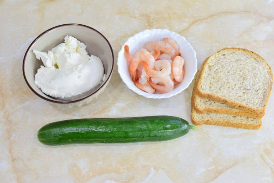 Для приготовления канапе подготовьте необходимые ингредиенты. Пропорции можно немного изменить на свой вкус.