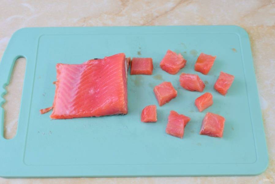 Рыбу нарежьте небольшими кубиками.