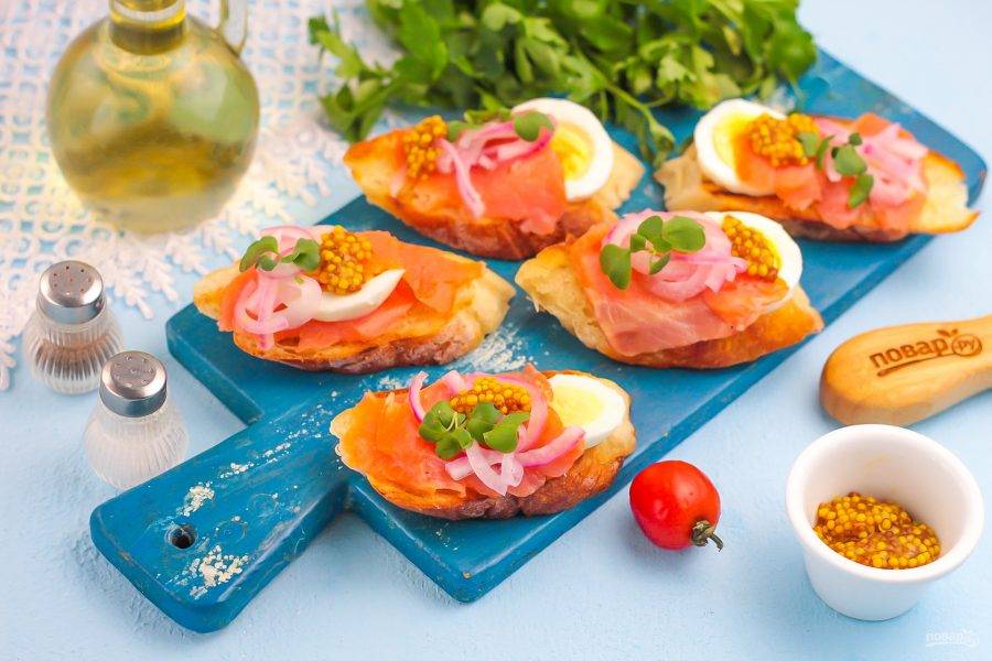 Канапе с семгой полностью готовы — подавайте их на стол. Приятного вам аппетита!
