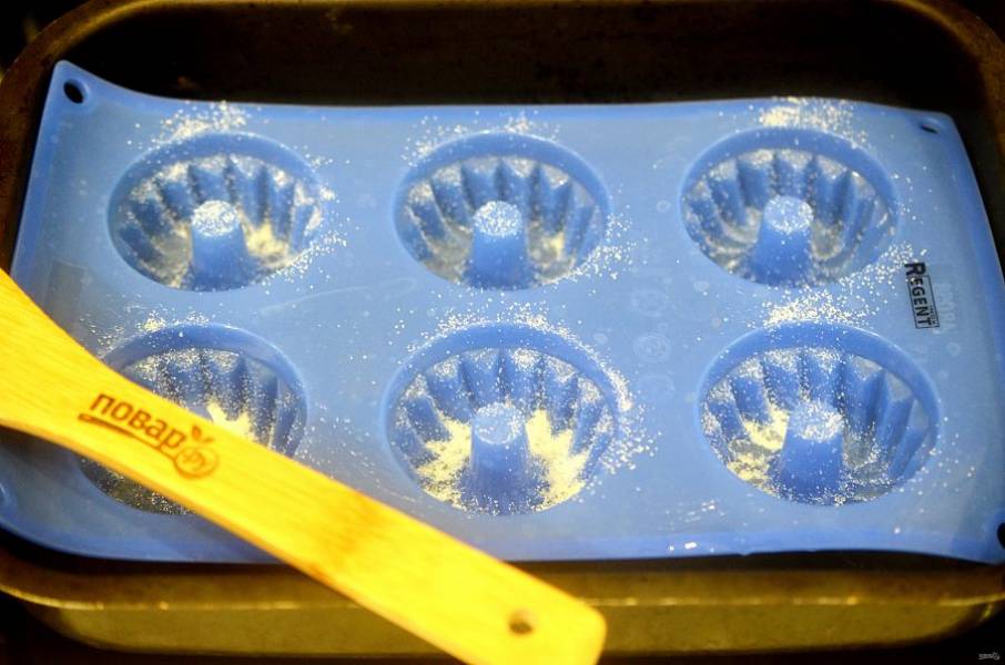 6.Формочки смажьте маслом и присыпьте сахаром.