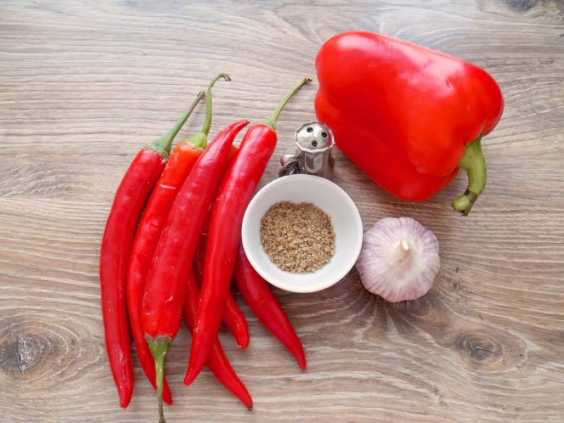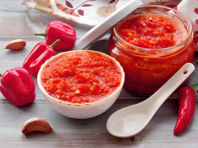 Очень острая приправа на основе двух перцев — болгарского и красного острого с добавлением чеснока. Ее можно добавлять при мариновании мяса, а самым смелым можно предложить в качестве соуса.