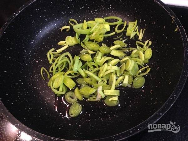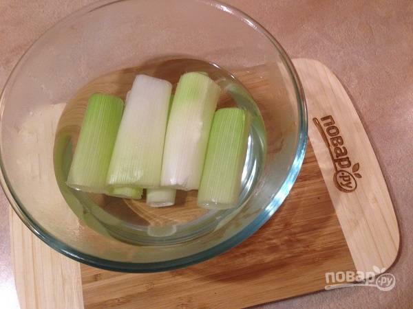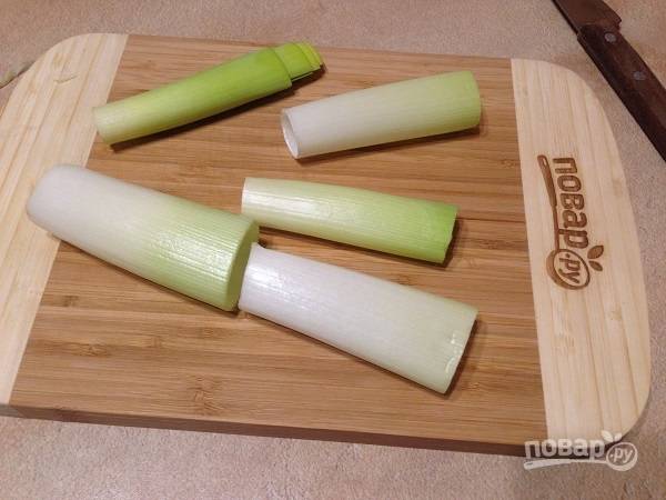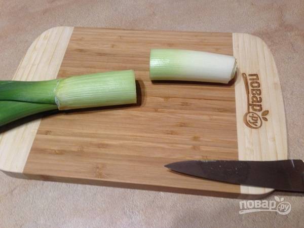 1. Отрезаем от стебля лука-порея белую часть, примерно 10 см.