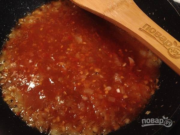 8. Добавляем измельченные помидоры. И выпариваем соус до нужного вам состояния.