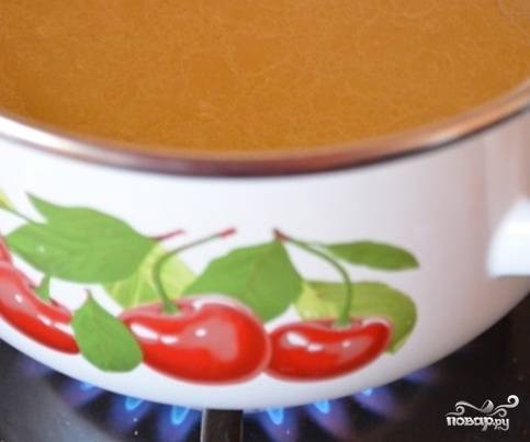 Остудите бульон. Уберите 6 столовых ложек жира сверху и положите его в сковороду.