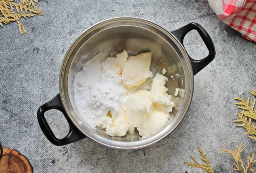 В миску выложите мягкое сливочное масло, сахарную пудру, взбейте. Добавьте сыр и взбейте до пышного крема.