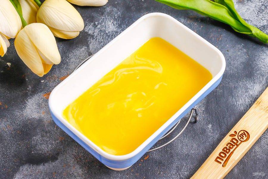 Растопите сливочное масло для теста, поместив емкость с ним в микроволновку или на водяную баню.