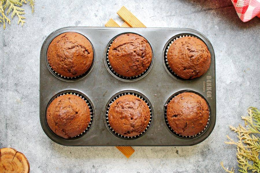 Поставьте форму в горячую духовку и выпекайте при температуре 180 градусов в течение 20-25 минут. Готовые капкейки достаньте и полностью остудите.