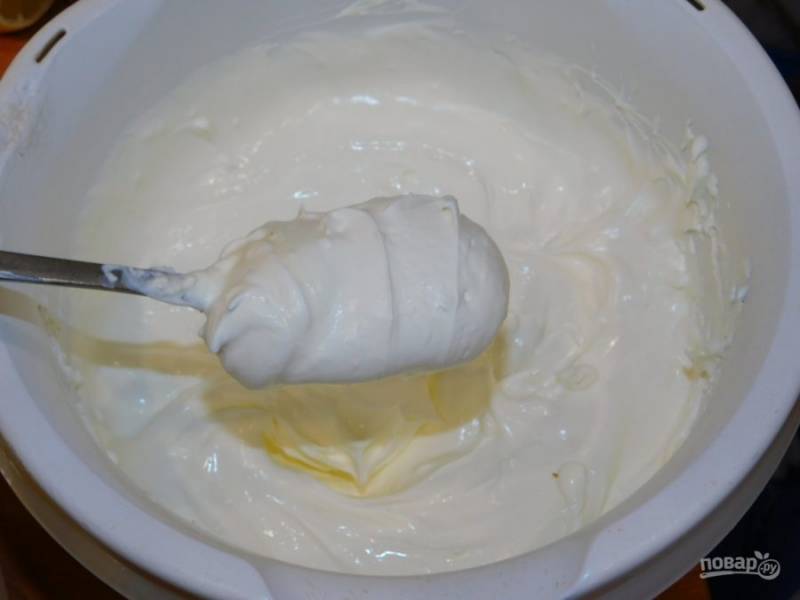 Для крема взбейте сливки с сахарной пудрой. Затем добавьте творожный сыр.