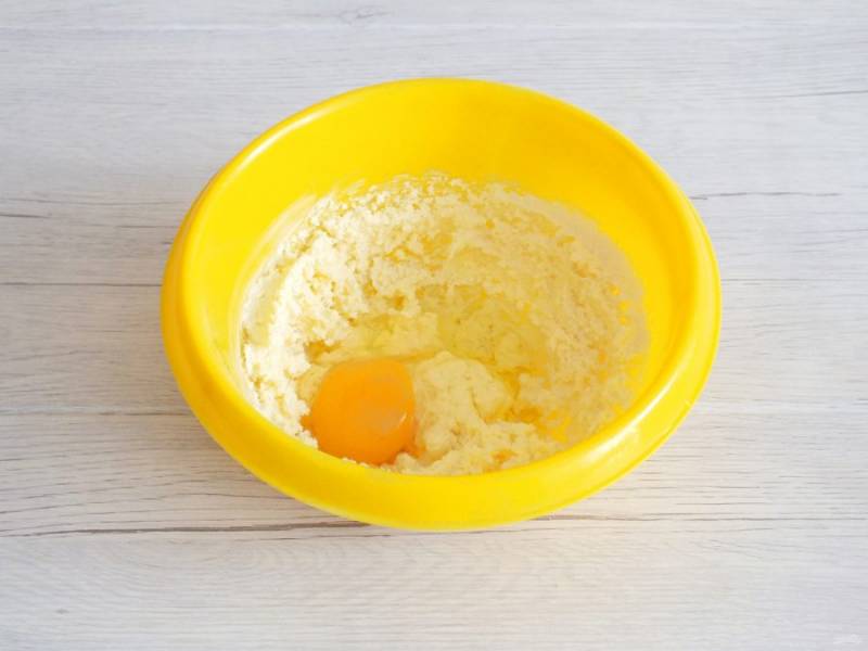К взбитой массе добавьте яйцо. Еще раз взбейте.