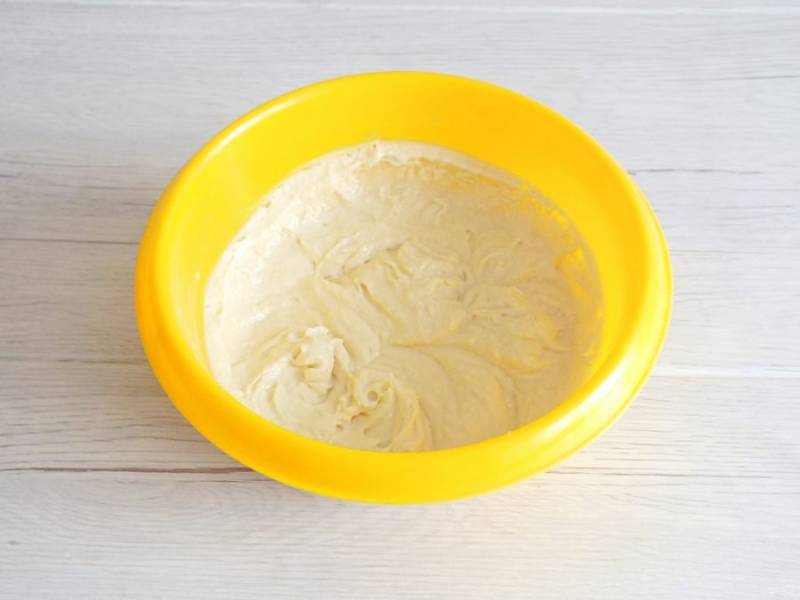 Взбейте тесто в течение 2-3 минут на большой скорости. Оно должно получиться воздушным и лёгким.