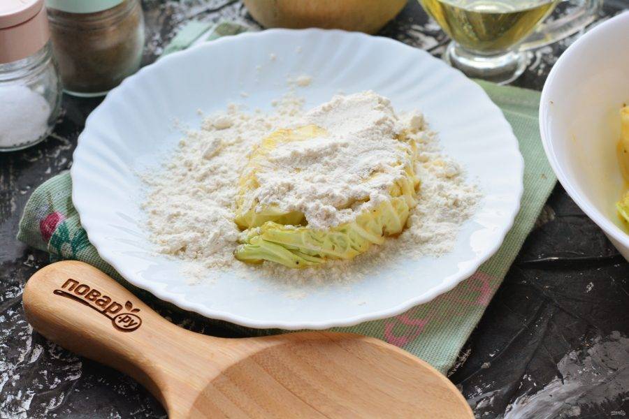 Обжаривайте капусту с двух сторон по 5-6 минут.