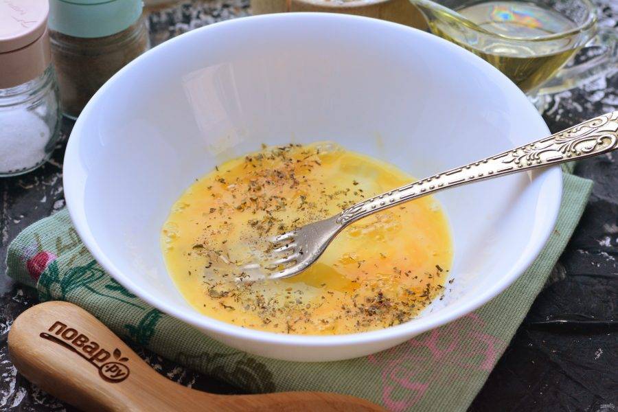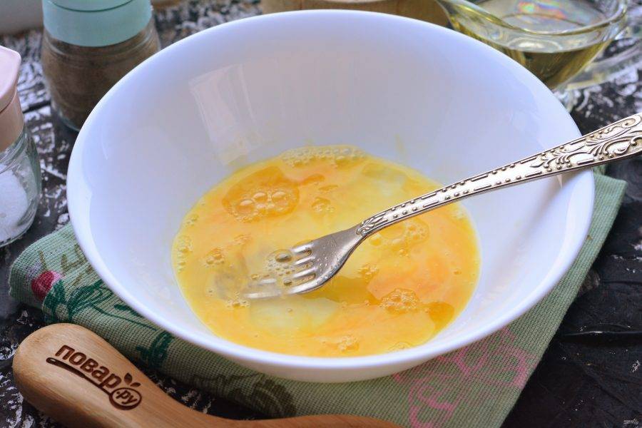 Яйца разбейте в мисочку, взболтайте вилочкой.