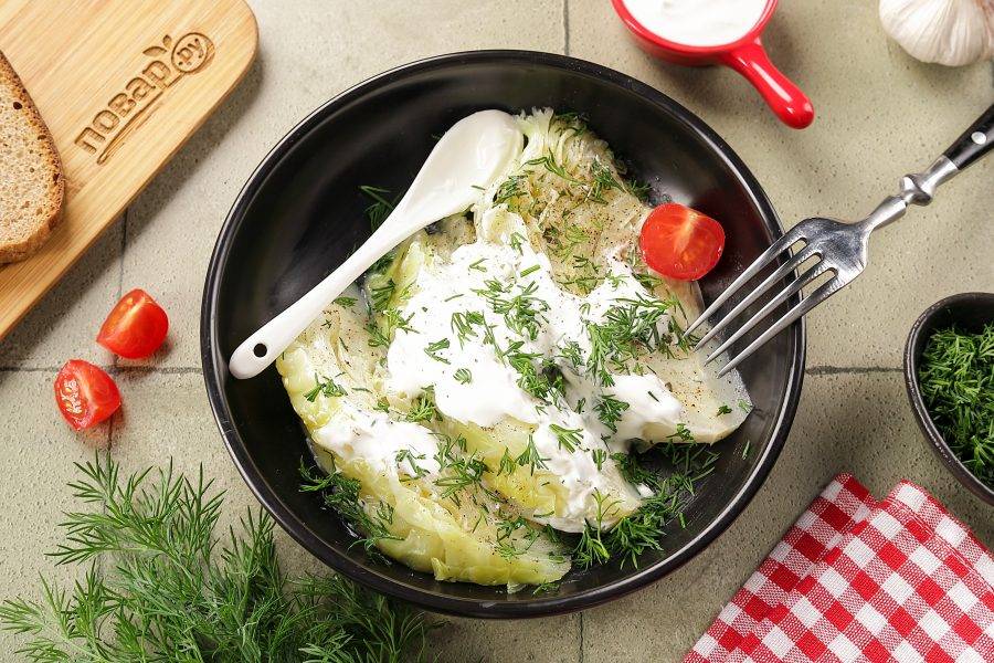 Можно посыпать капусту укропом или любой другой свежей зеленью.