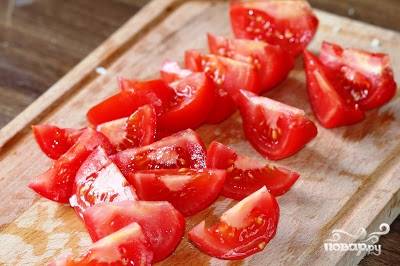 Помидоры моем и нарезаем кусочками. Величина кусочков зависит только от ваших предпочтений:)