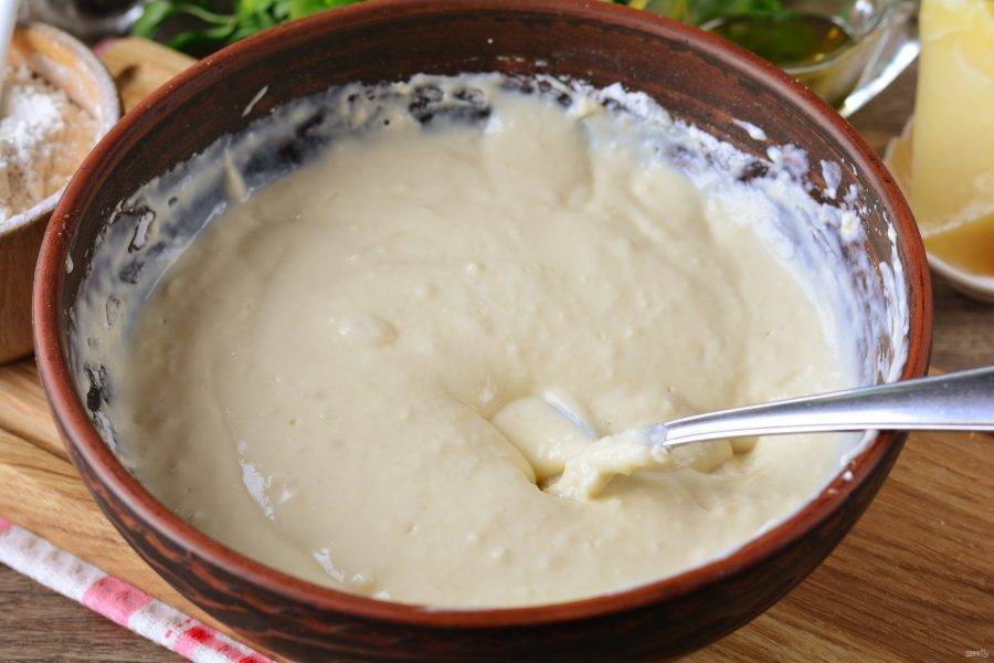 Перемешайте тесто — оно будет чуть густоватым, примерно как на оладьи.