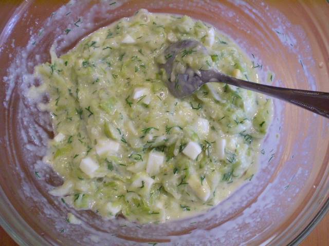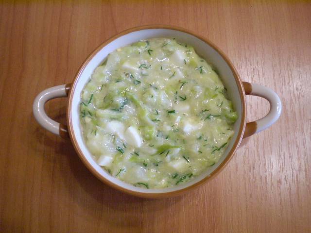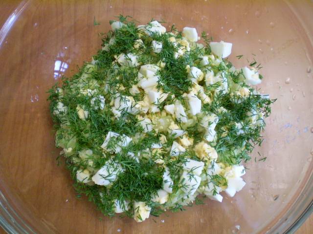 7. Добавляем вареное яйцо и укроп. Перемешиваем.
