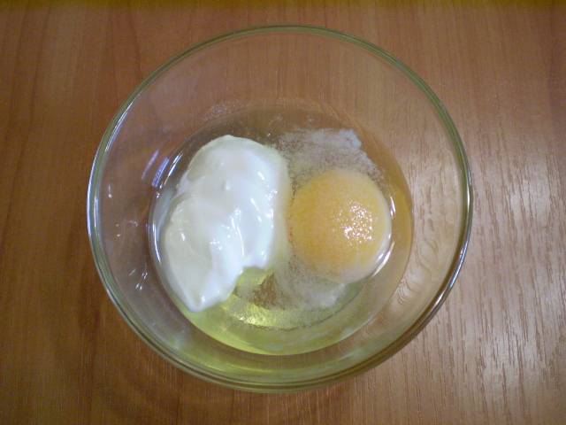 5. Смешиваем сырое яйцо со сметаной и солью.