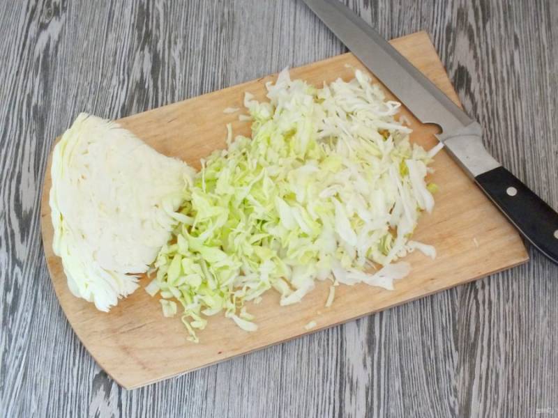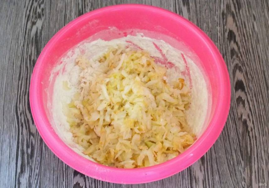 Добавьте охлажденную капусту и замесите тесто. Замешивается тесто очень легко.
