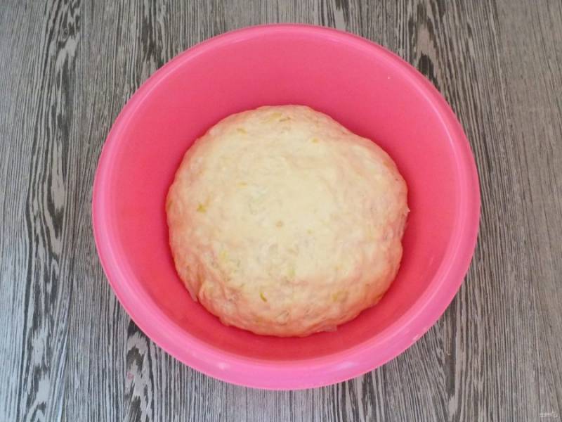 Готовое тесто округлите, прикройте полотенцем и оставьте на 1 час в теплом месте.