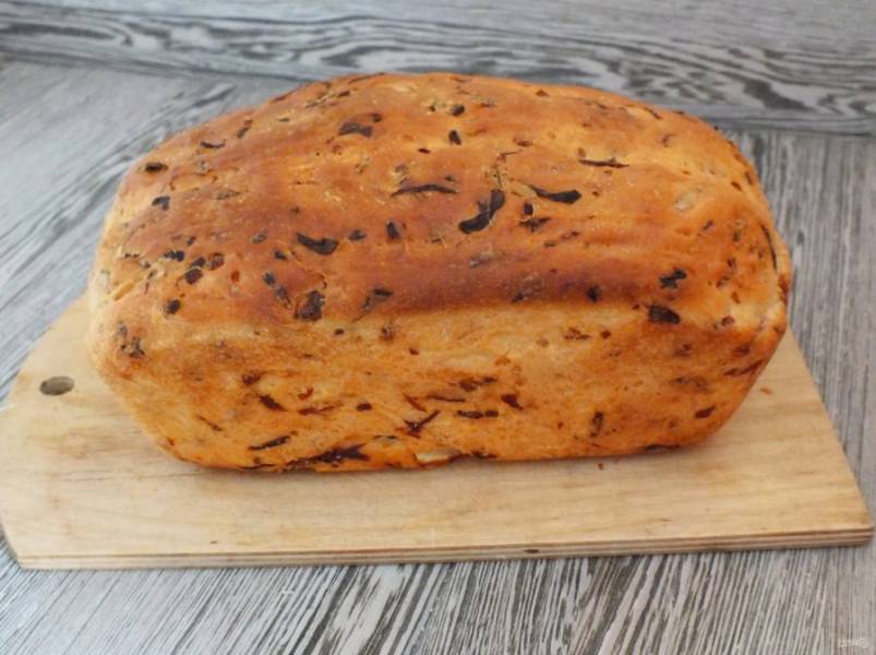 Когда время истечет достаньте форму с хлебом. Переложите на доску и охладите.