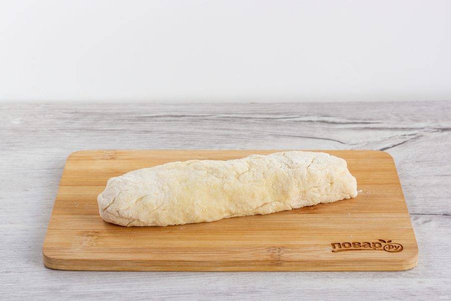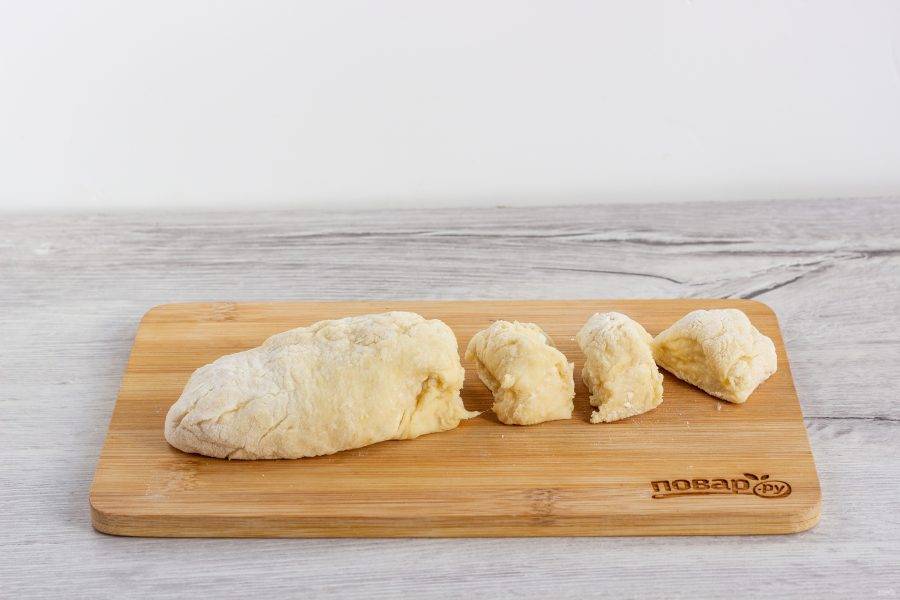 Разделите тесто на 4 части, из каждой части сформируйте колбаску.