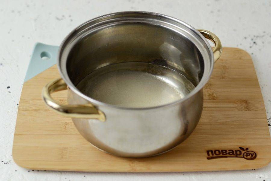 В кастрюле вскипятите воду и сахар. Дождитесь полного растворения сахара.