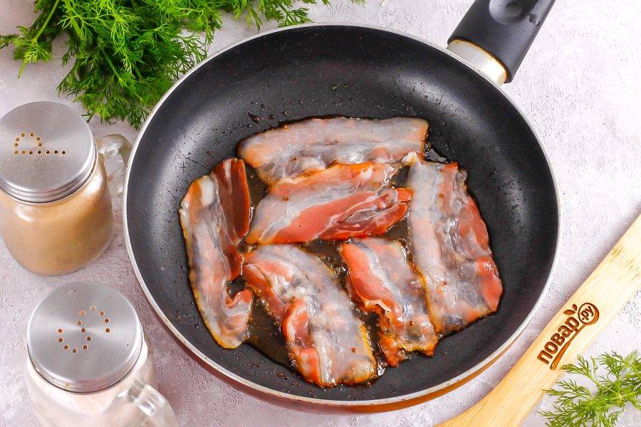 Подготовьте указанные ингредиенты. Бекон можно использовать свежий или копченый.