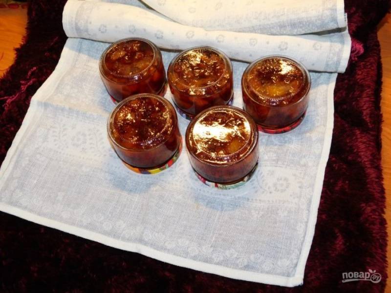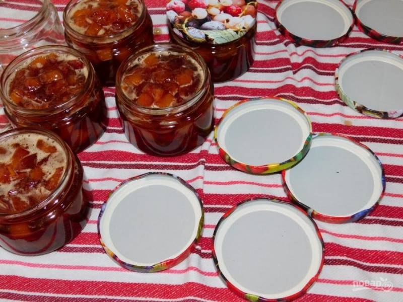 Готовое варенье разложите по стерилизованным банкам и закройте крышками.
