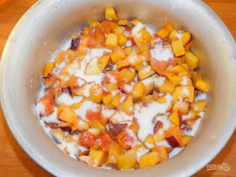 Засыпьте нектарины сахаром и оставьте на несколько часов, чтобы фрукты пустили сок.