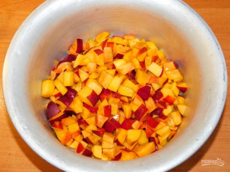 Нектарины нарежьте кубиками и отмерьте 2 кг.