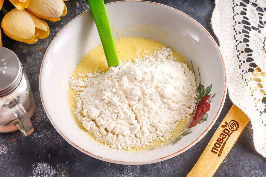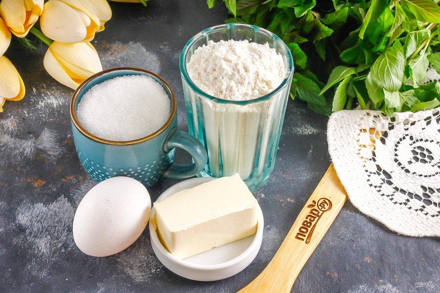 Растопите 60 грамм сливочного масла в микроволновой печи или на водяной бане, но не до кипения, поместив его в глубокую емкость. Вбейте туда же куриное яйцо, всыпьте 40 грамм сахара, соль и взбейте. Затем добавьте муку и замесите плотное тесто.