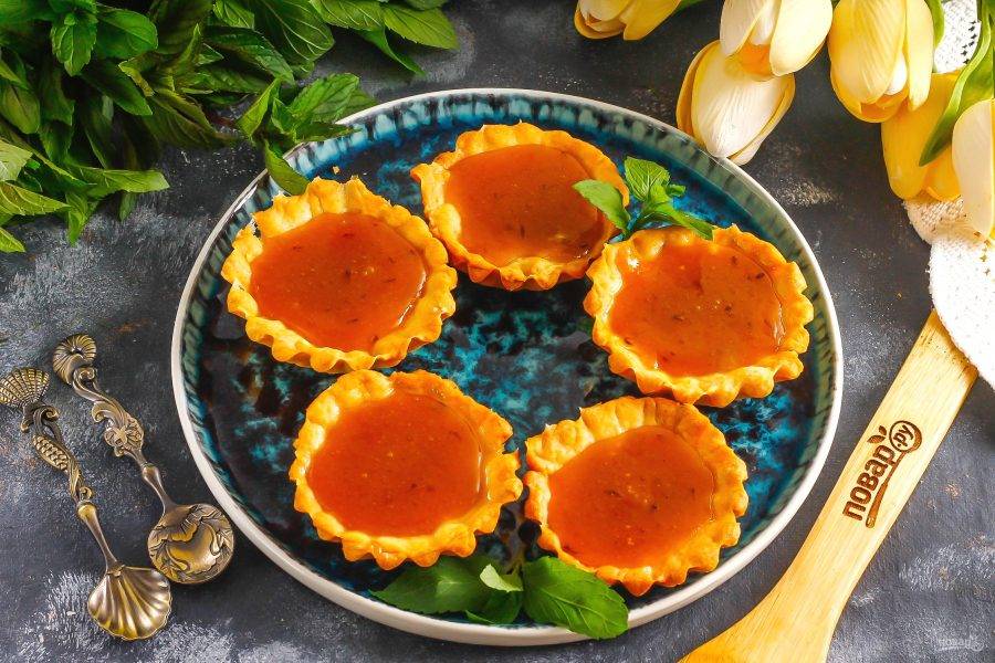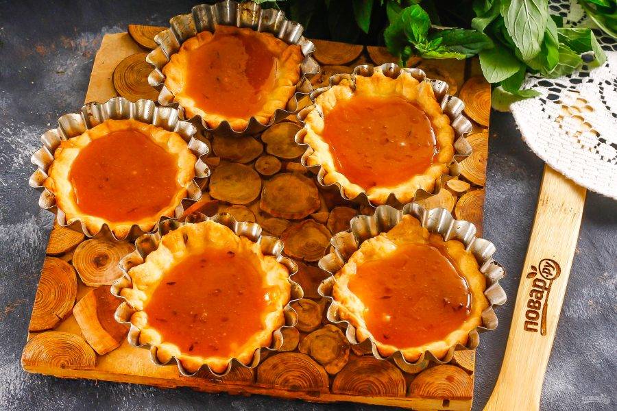 Разогрейте духовку до 180 градусов и испеките тарталетки примерно 15-20 минут до румяности, чтобы их дно не подгорело. Остудите выпечку, достав ее из духовки.
