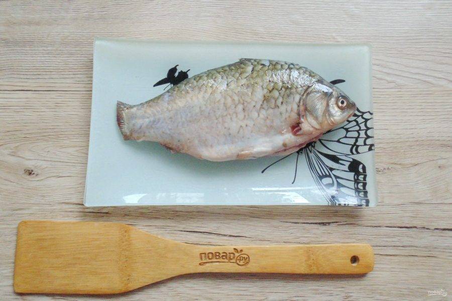 Очистите рыбу от чешуи. Обрежьте плавники, и выпотрошите внутренности. Хорошо вымойте снаружи и внутри.