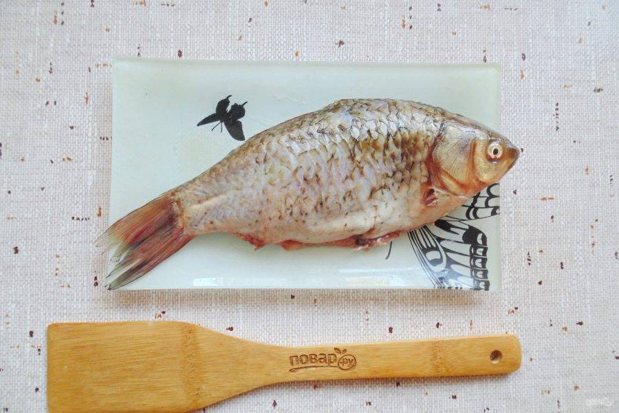 Подготовьте ингредиенты для приготовления карася на луковой подушке.
