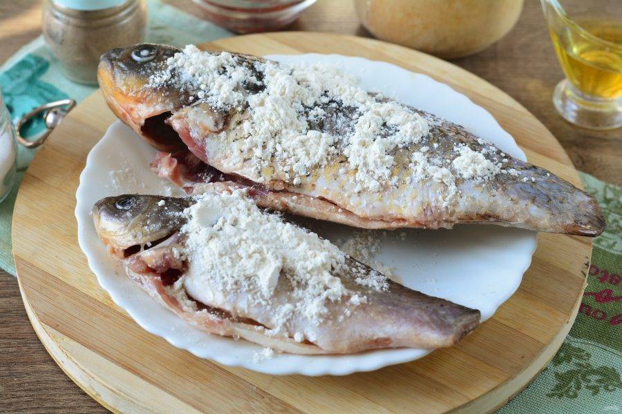 Почищенных от внутренностей и чешуи карасей посолите и поперчите по вкусу.