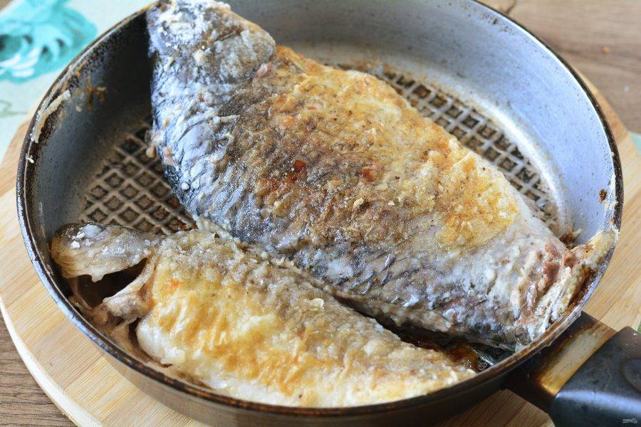 Обжаривайте рыбу с двух сторон 8-10 минут до золотистой корочки.